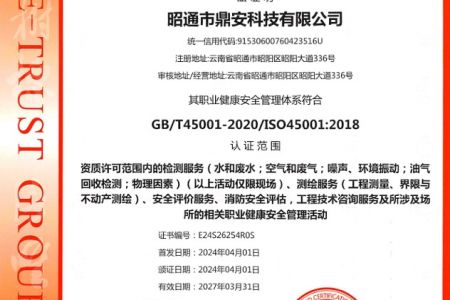 2003年11月10日,昭通市鼎安科技有限公司成立,初始主要從事第三方安全工程技術(shù)服務(wù),經(jīng)多年運(yùn)營,發(fā)展為多專業(yè)綜合科技平臺,為社會(huì)提供多種專業(yè)技術(shù)服務(wù)工作。 現(xiàn)公司注冊資金為1200萬元,公司法定代表人:毛衛(wèi)旭。公司主要業(yè)務(wù):安全評價(jià)、安全標(biāo)準(zhǔn)化評審、安全工程技術(shù)服務(wù);環(huán)境監(jiān)測、職業(yè)衛(wèi)生檢測、檢驗(yàn);法律訴訟及非訴訟服務(wù);司法鑒定、固定資產(chǎn)投資項(xiàng)目節(jié)能服務(wù);工程咨詢;工程測量測繪;安全教育培訓(xùn)等。是安全生產(chǎn)服務(wù)、安全教育培訓(xùn)機(jī)構(gòu),也是環(huán)境監(jiān)測和職業(yè)衛(wèi)生服務(wù)機(jī)構(gòu),同時(shí)也是綜合的檢測檢驗(yàn)、綜合科技平臺服務(wù)機(jī)構(gòu)。多年來為公、檢、法、司、軍、警、海關(guān)、仲裁、安監(jiān)、工礦商貿(mào)企業(yè)、社會(huì)團(tuán)體及個(gè)人提供多專業(yè)技術(shù)服務(wù)。